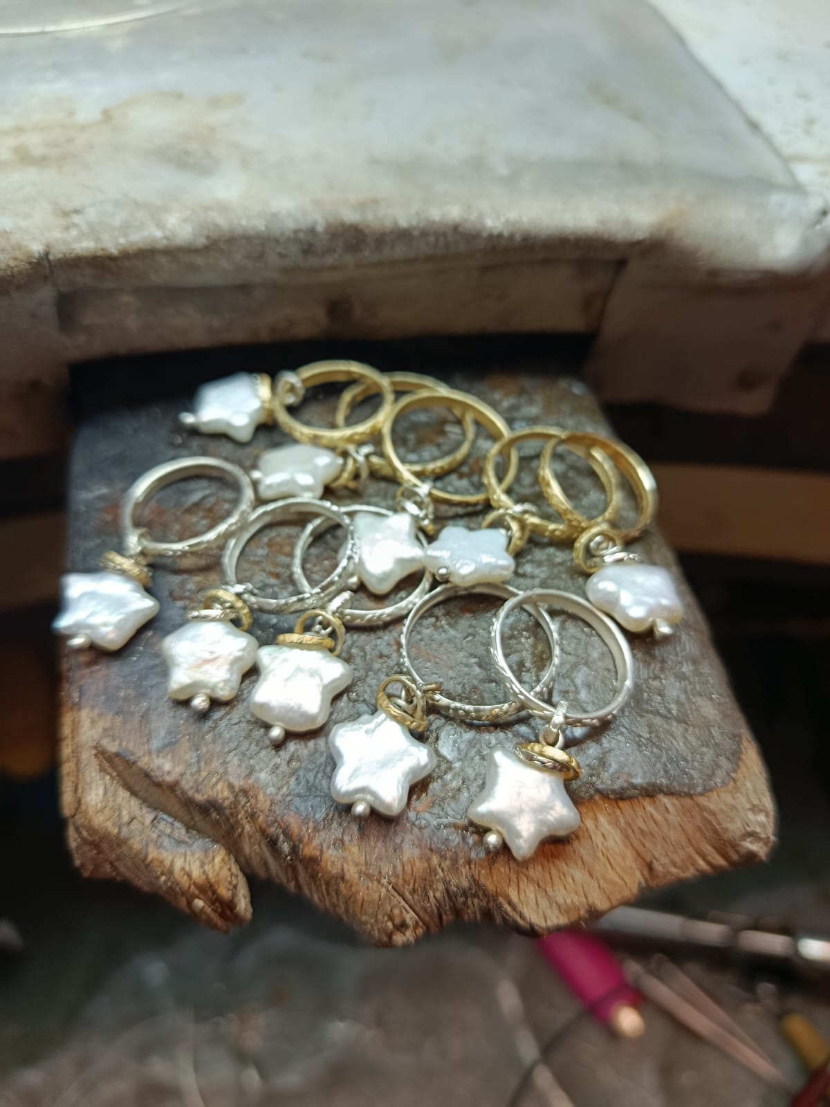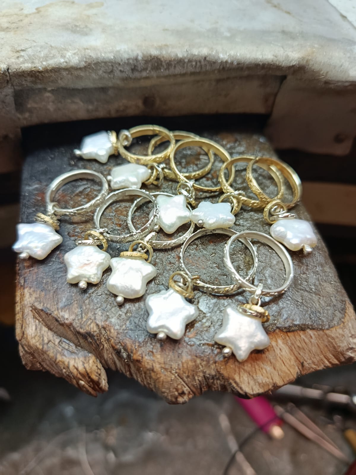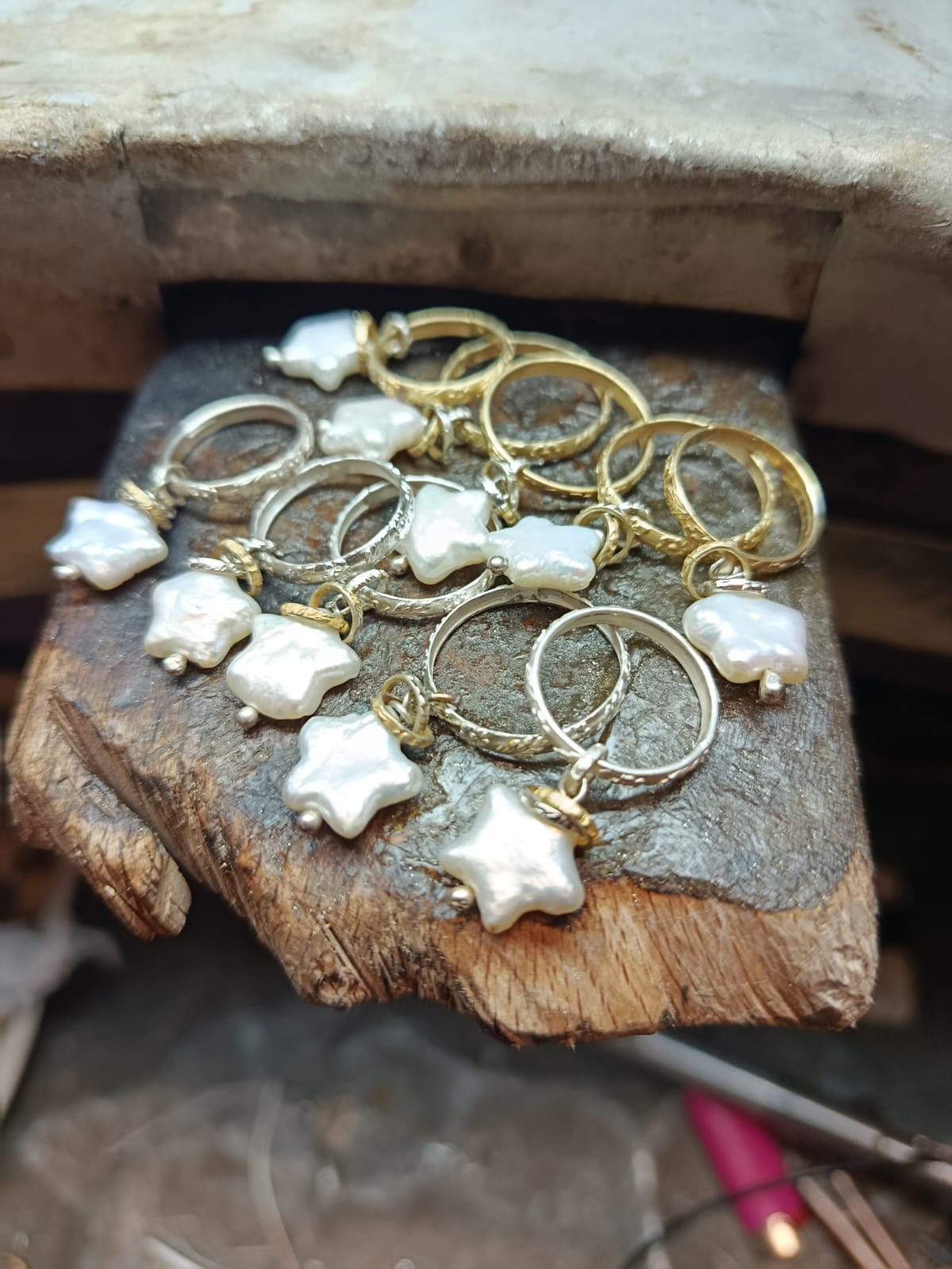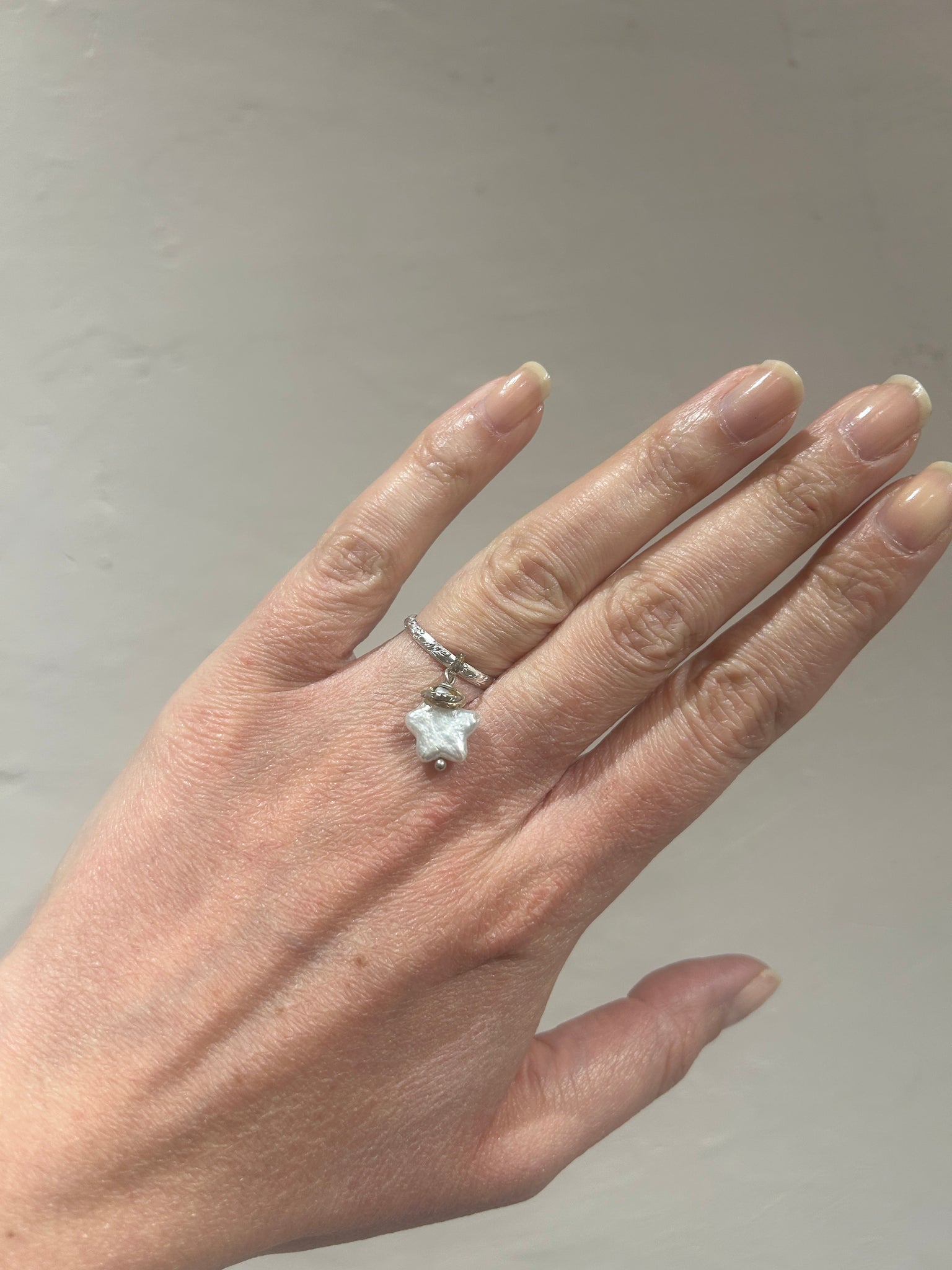 materiale; argento 925 e perla forma di stella, anello realizzato a mano