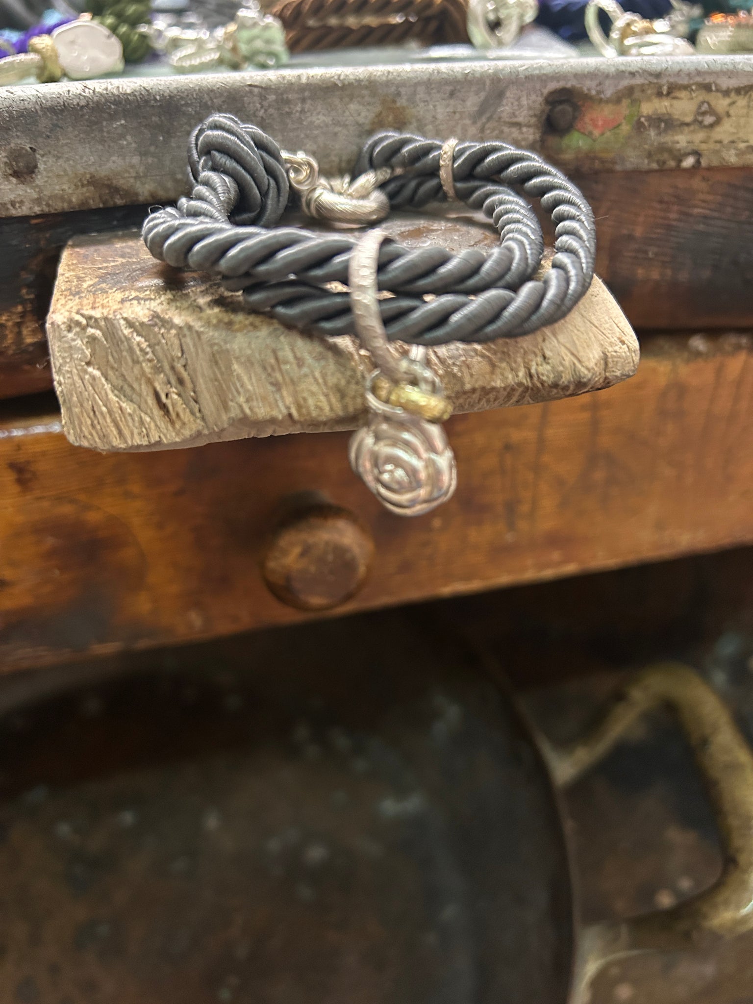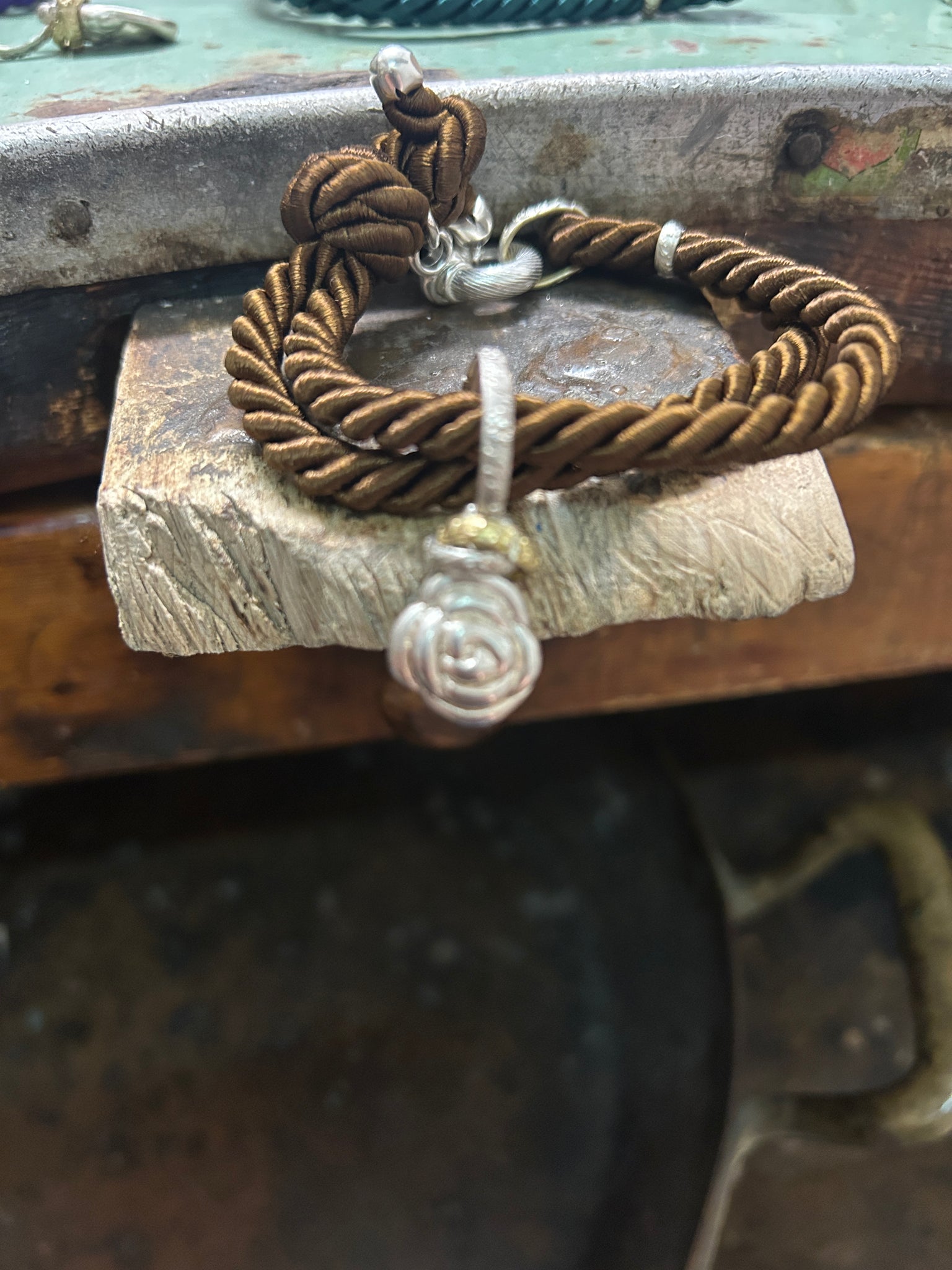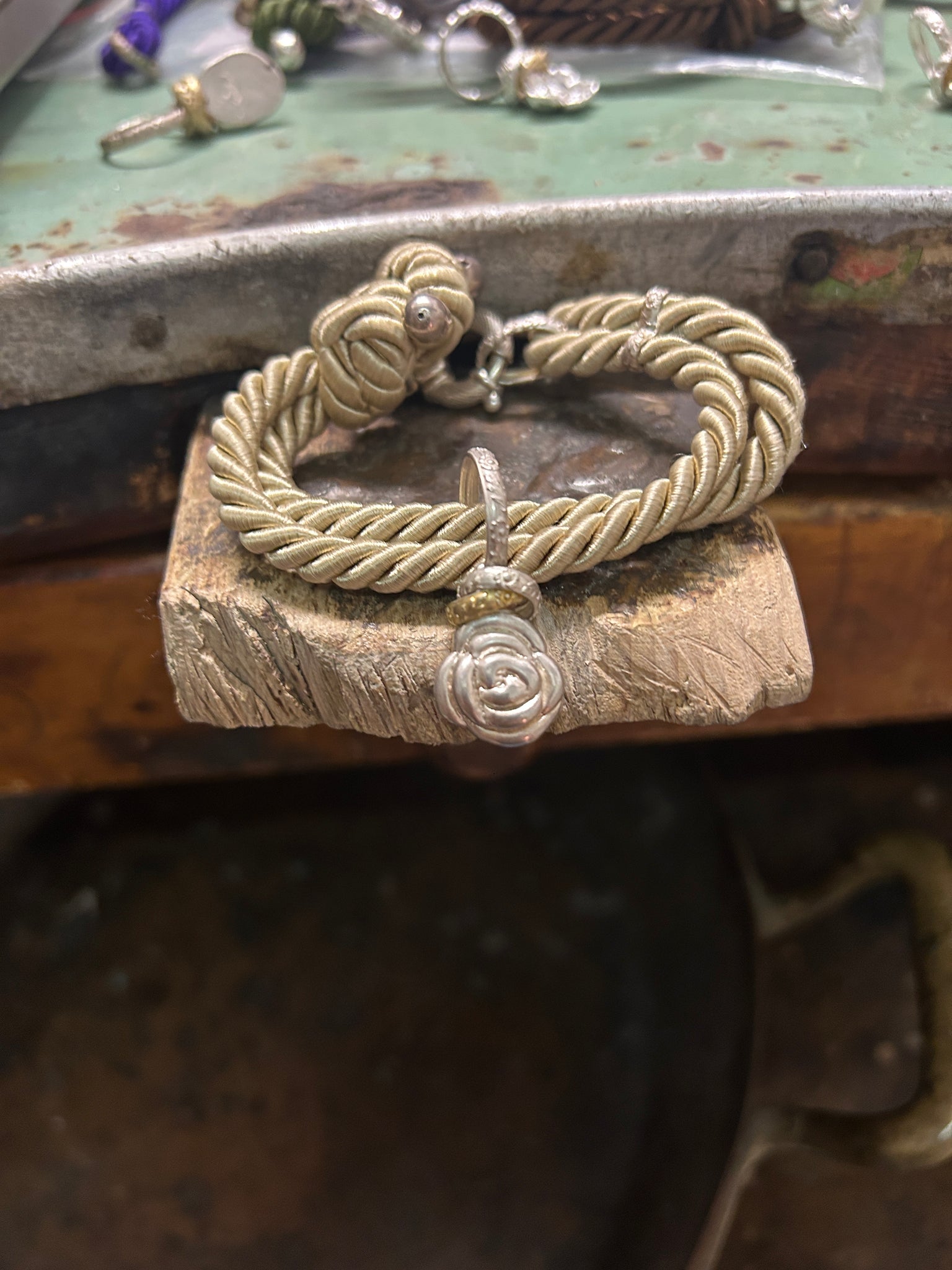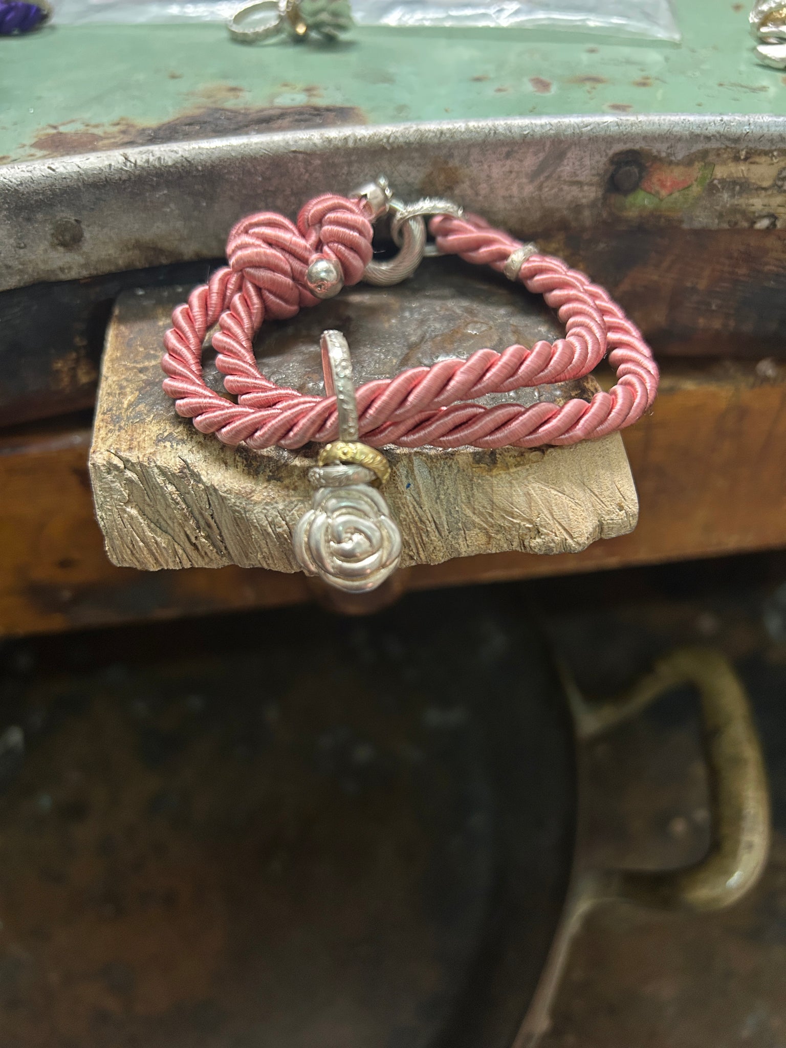 I nostri famosi bracciali di seta fatti a mano con la chiusura brevettata in argento 925 con il ciondolo o con i ciondoli della collezione Lottie.