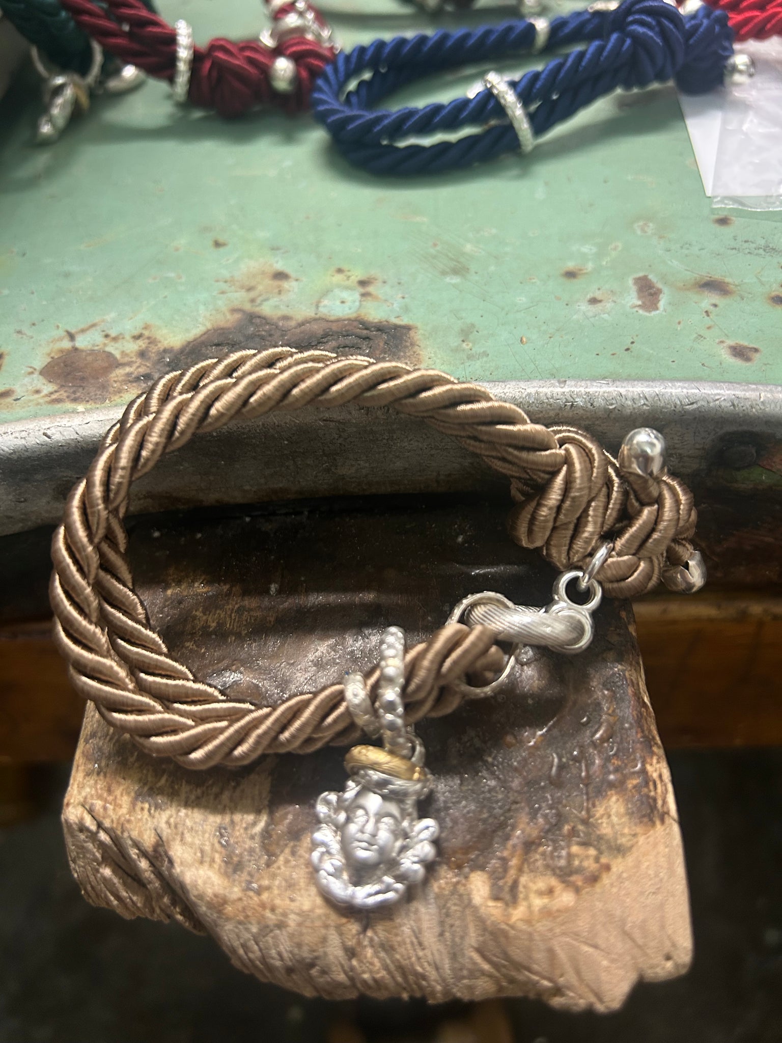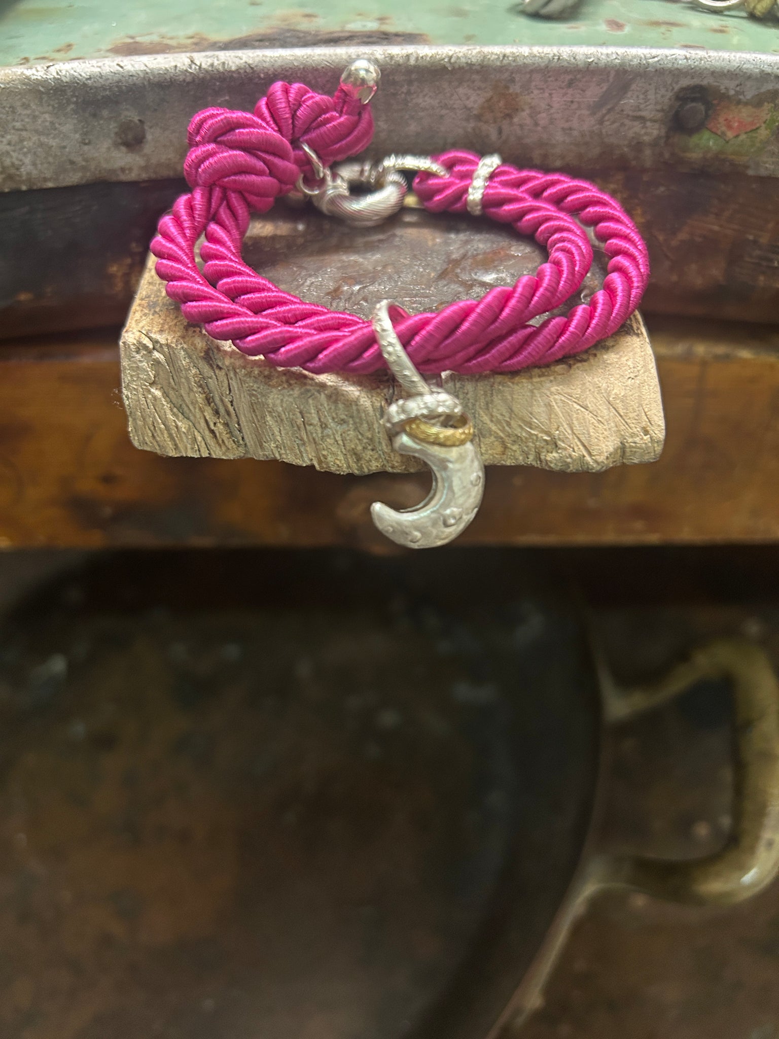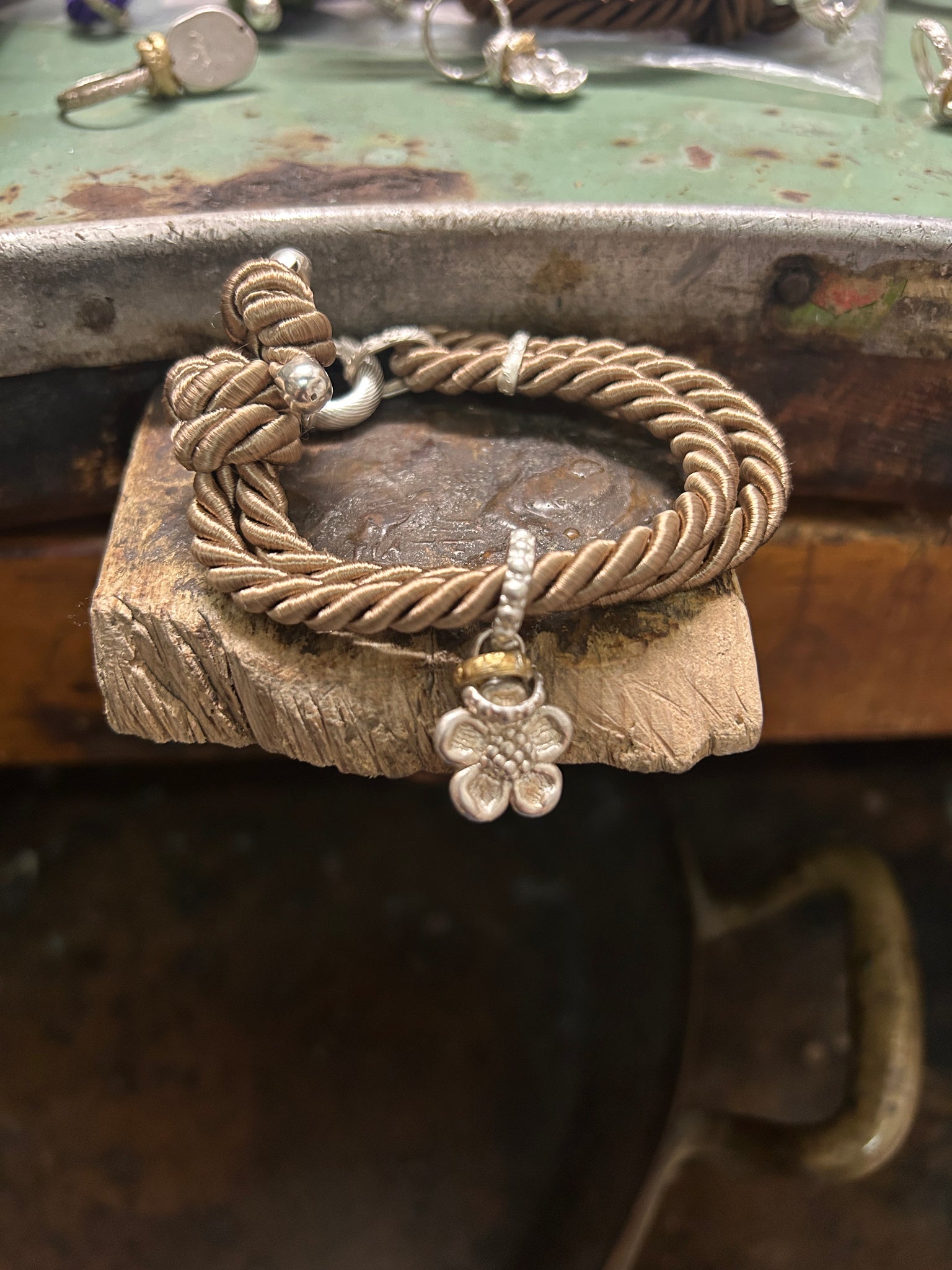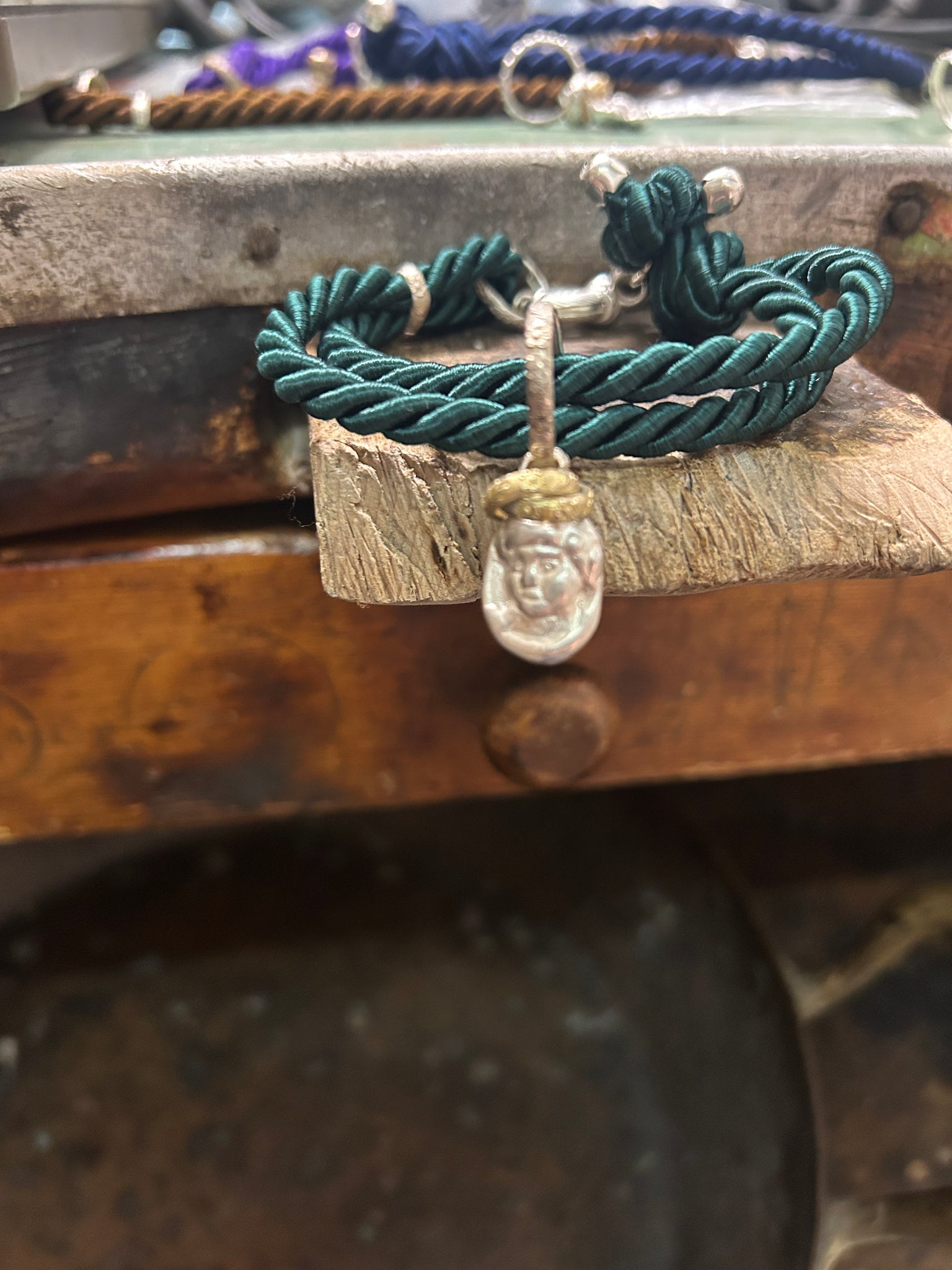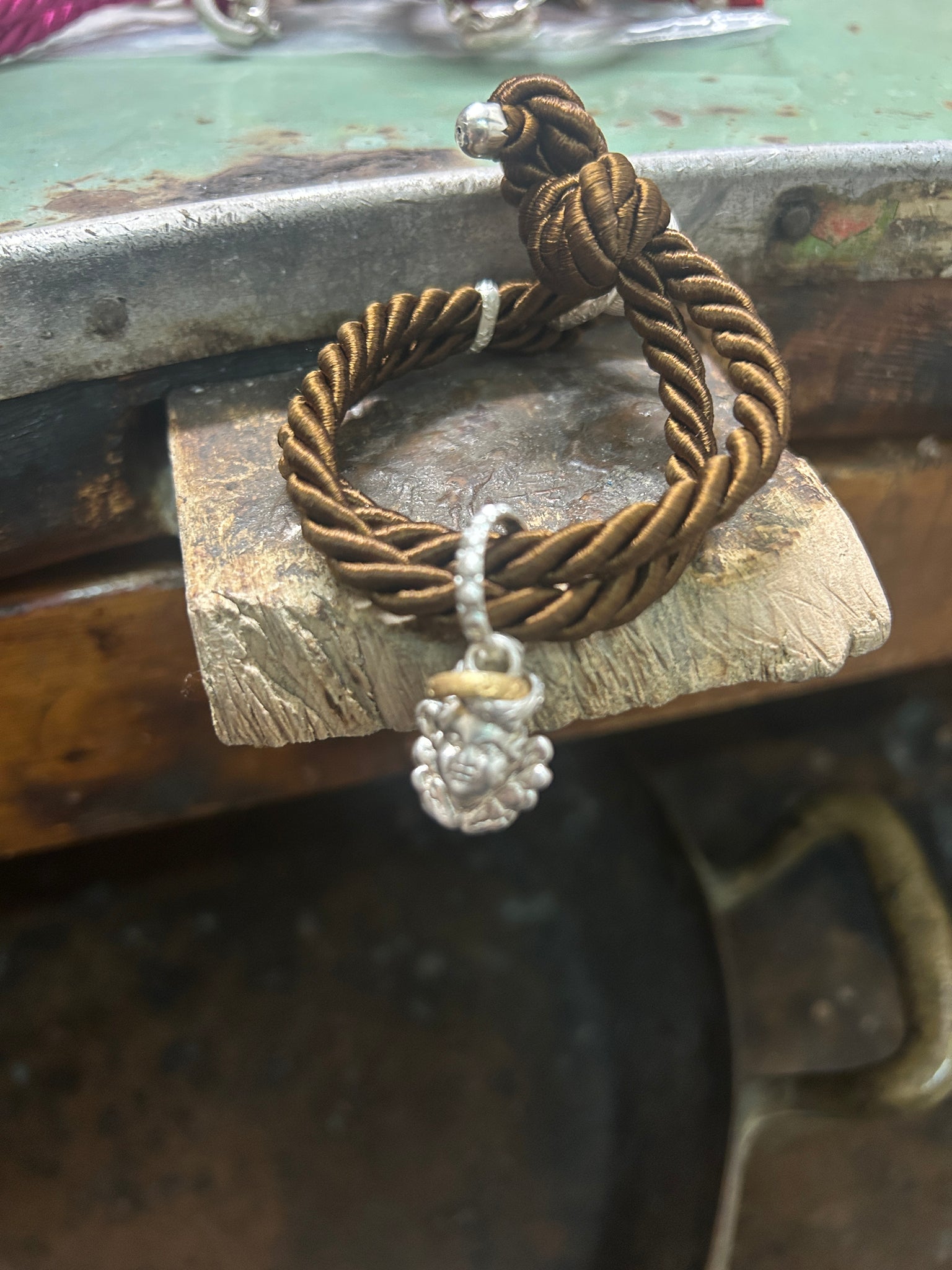 I nostri famosi bracciali di seta fatti a mano con la chiusura brevettata in argento 925 con il ciondolo o con i ciondoli della collezione Lottie.