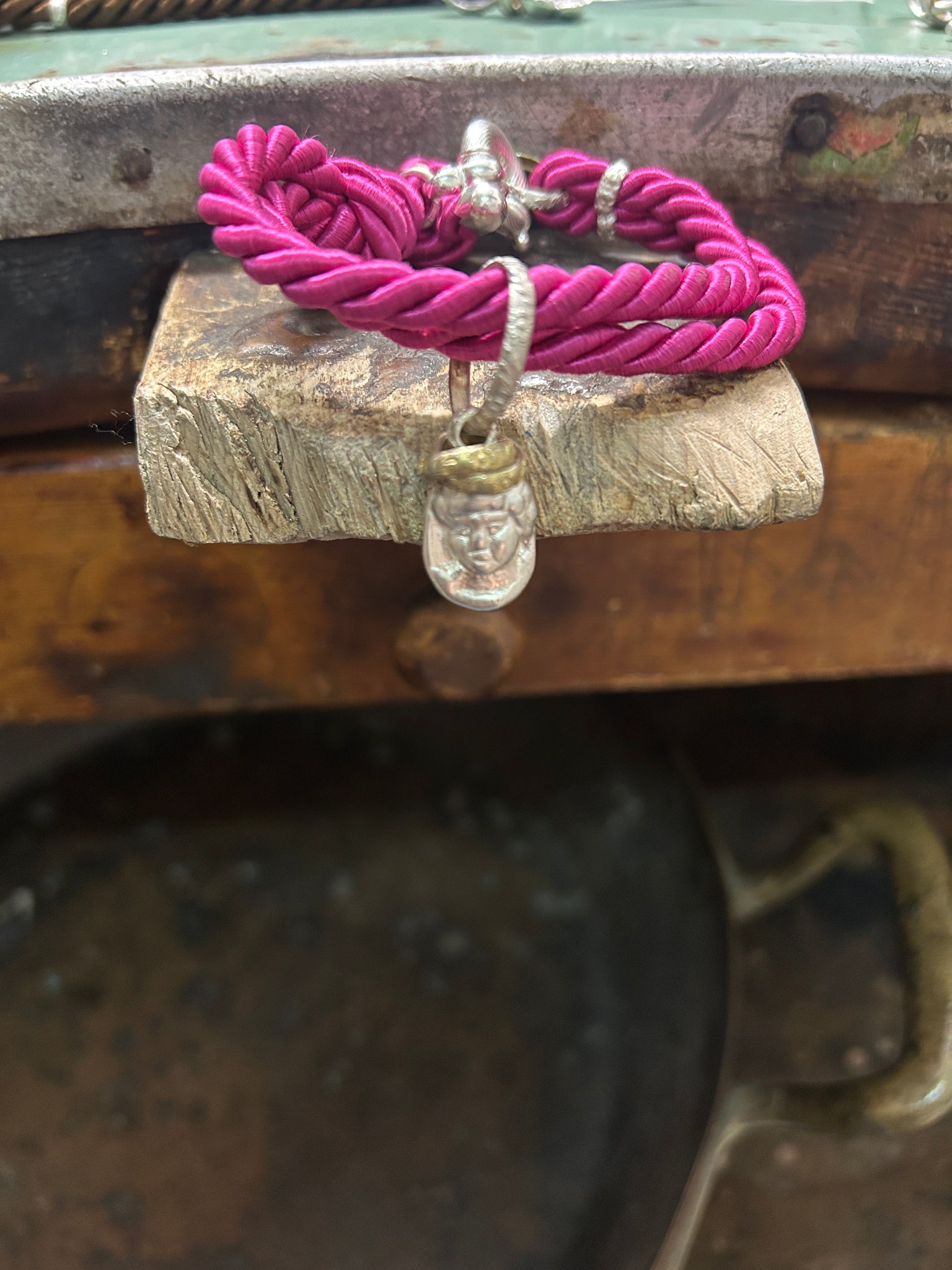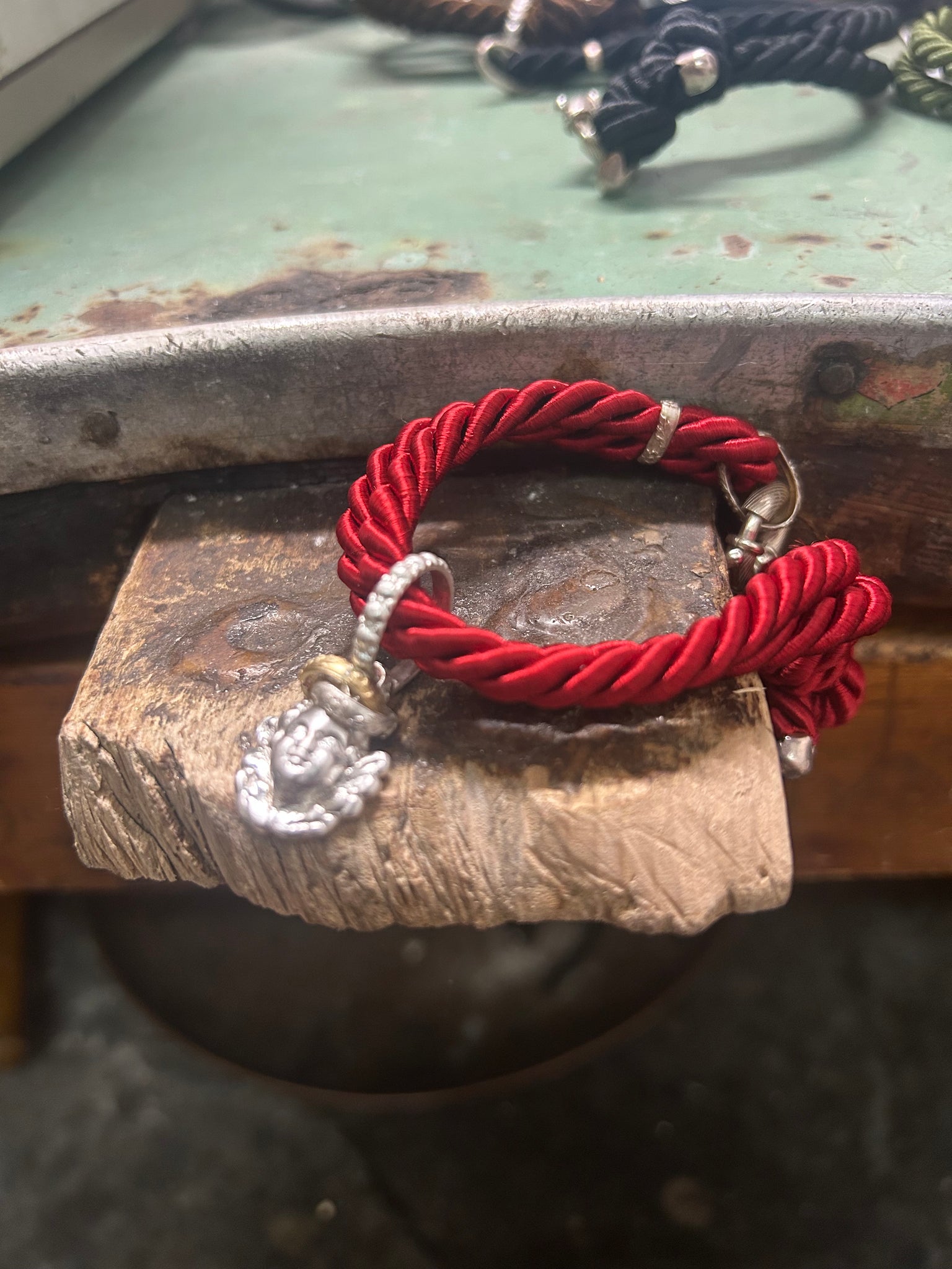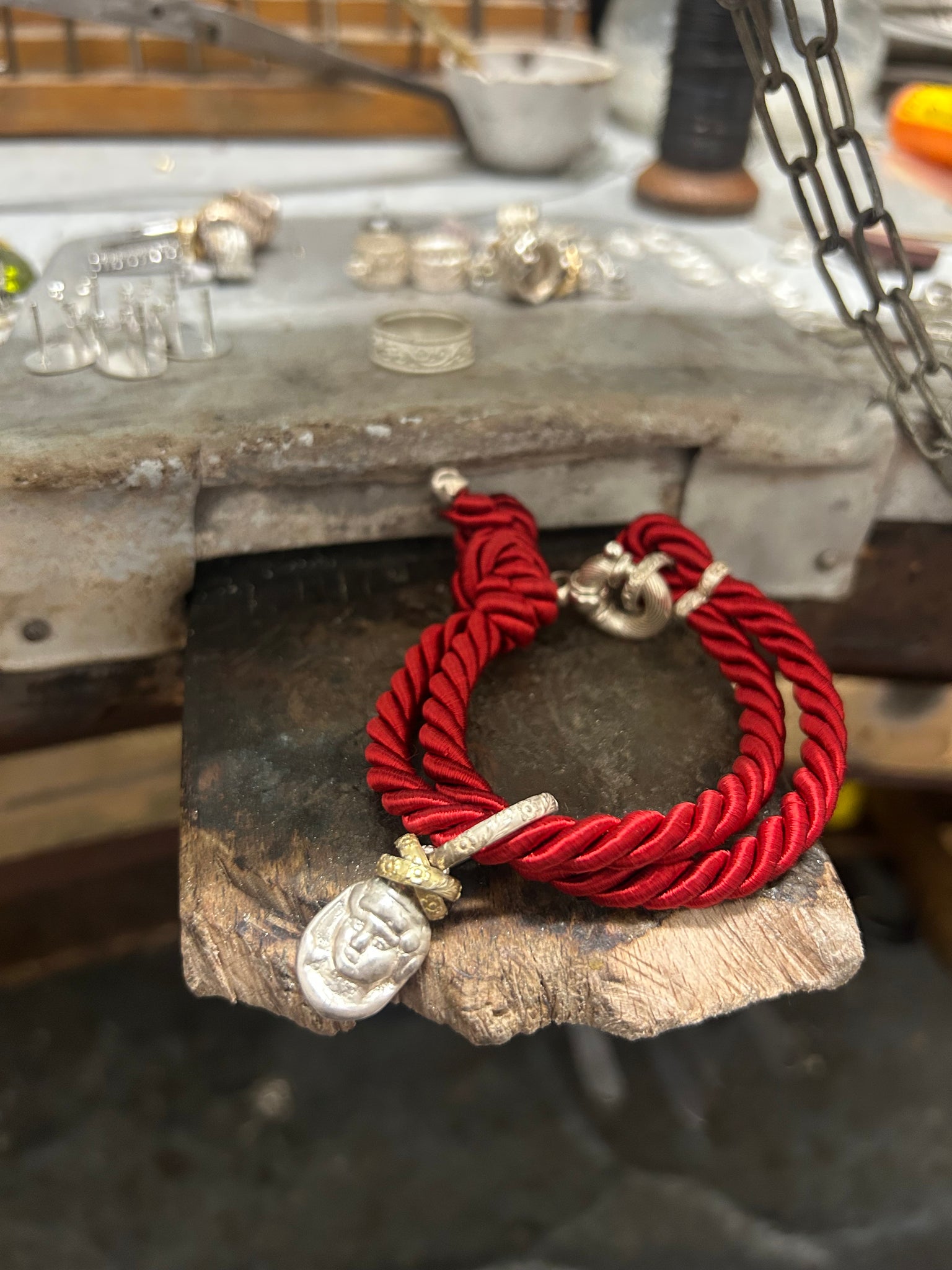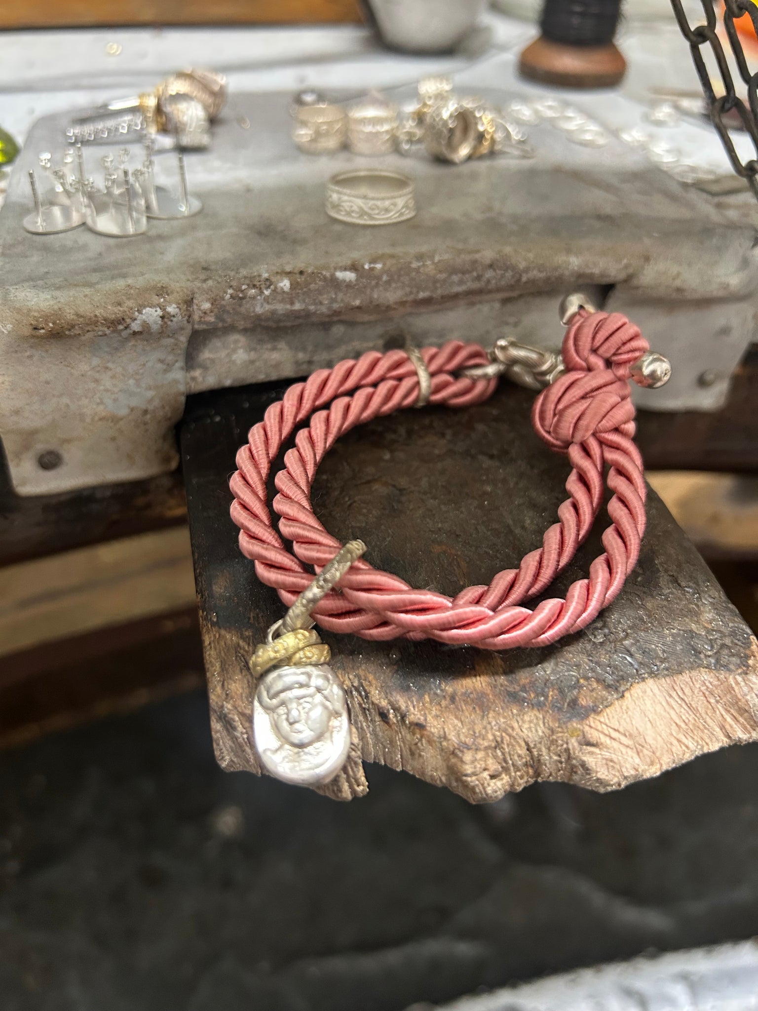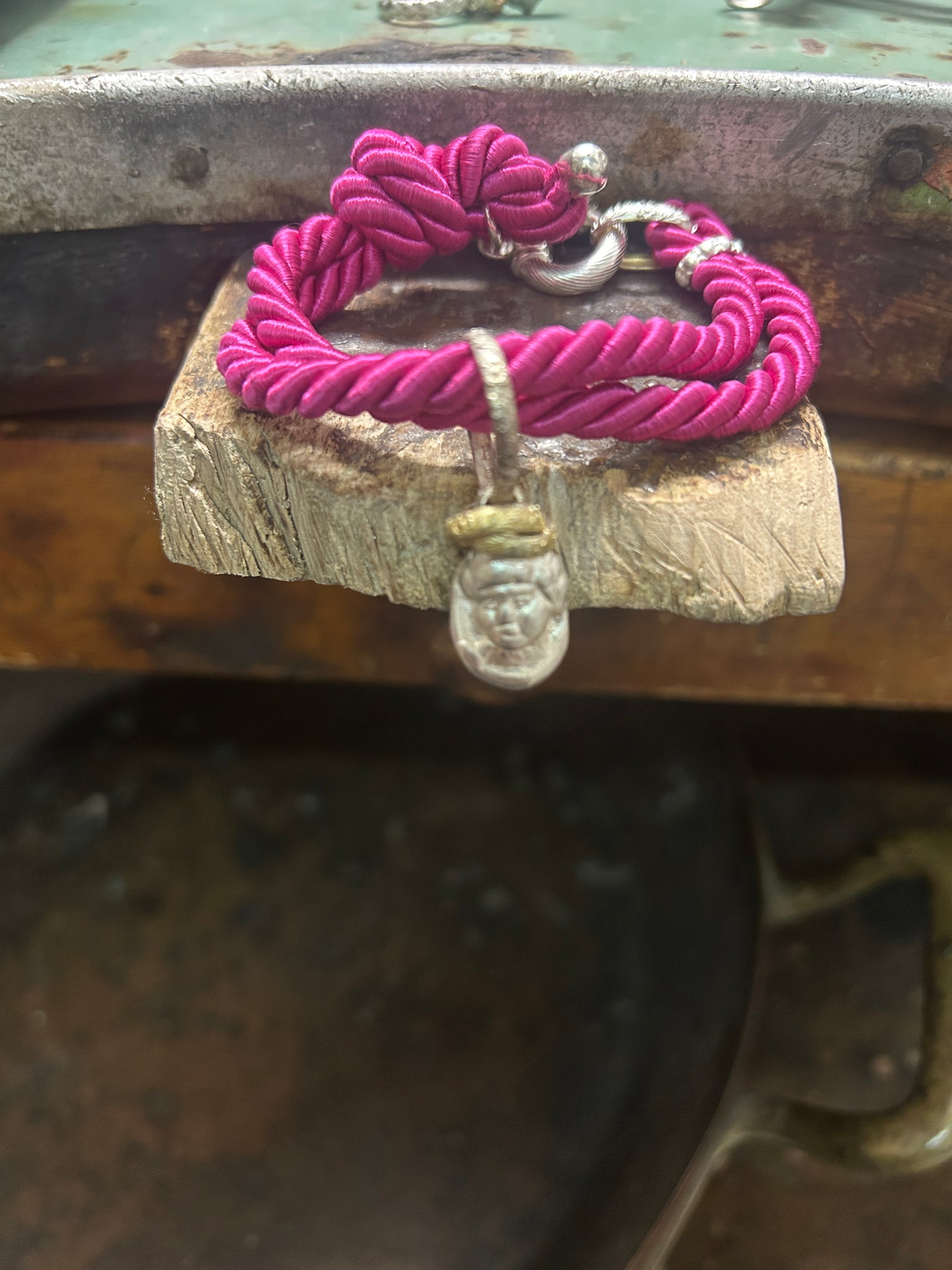 I nostri famosi bracciali di seta fatti a mano con la chiusura brevettata in argento 925 con il ciondolo o con i ciondoli della collezione Lottie.