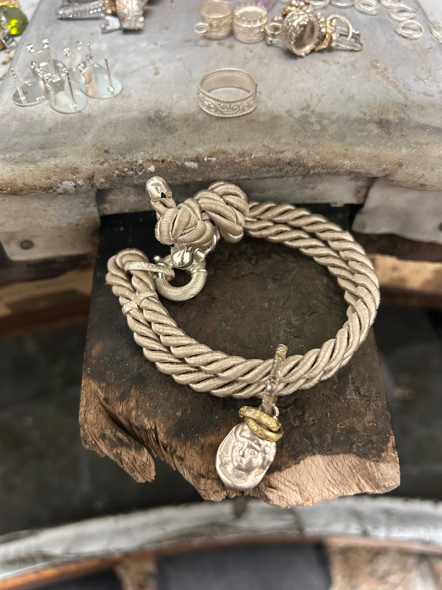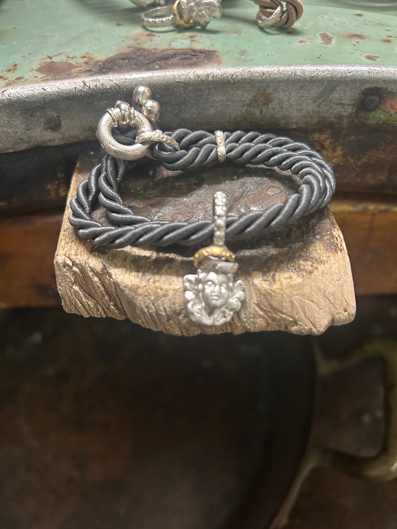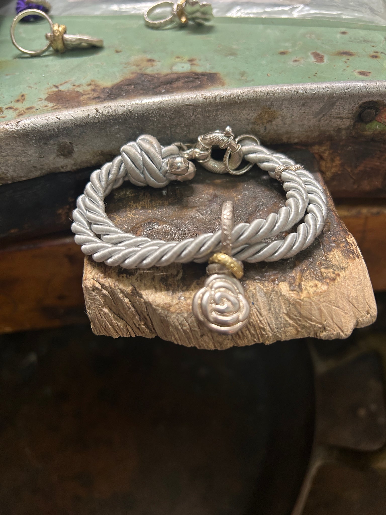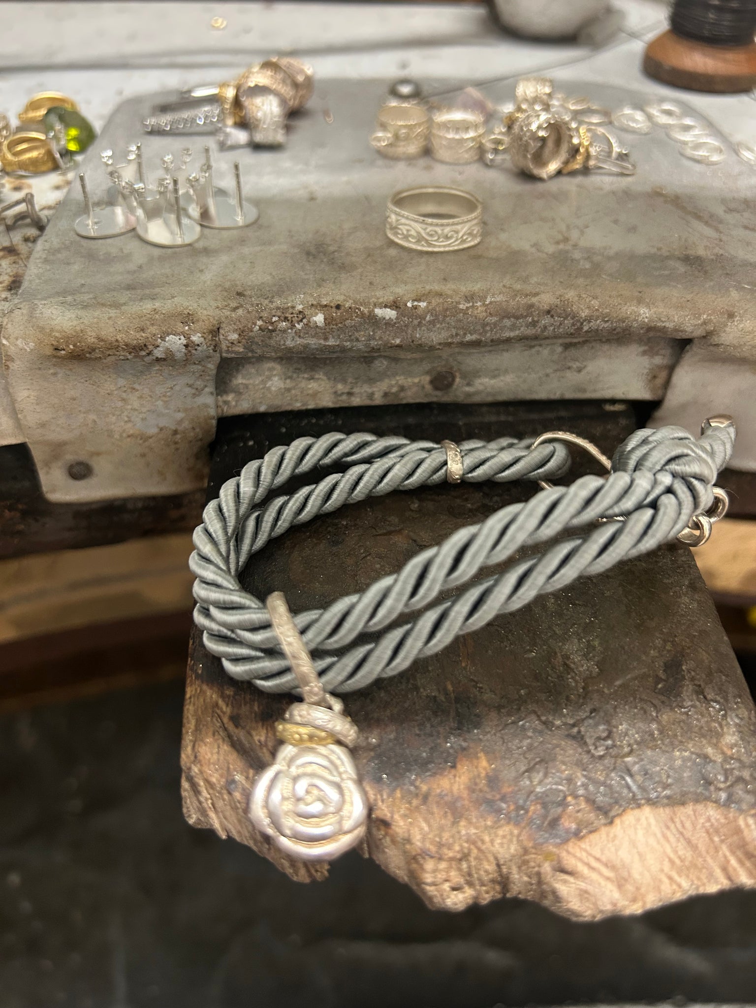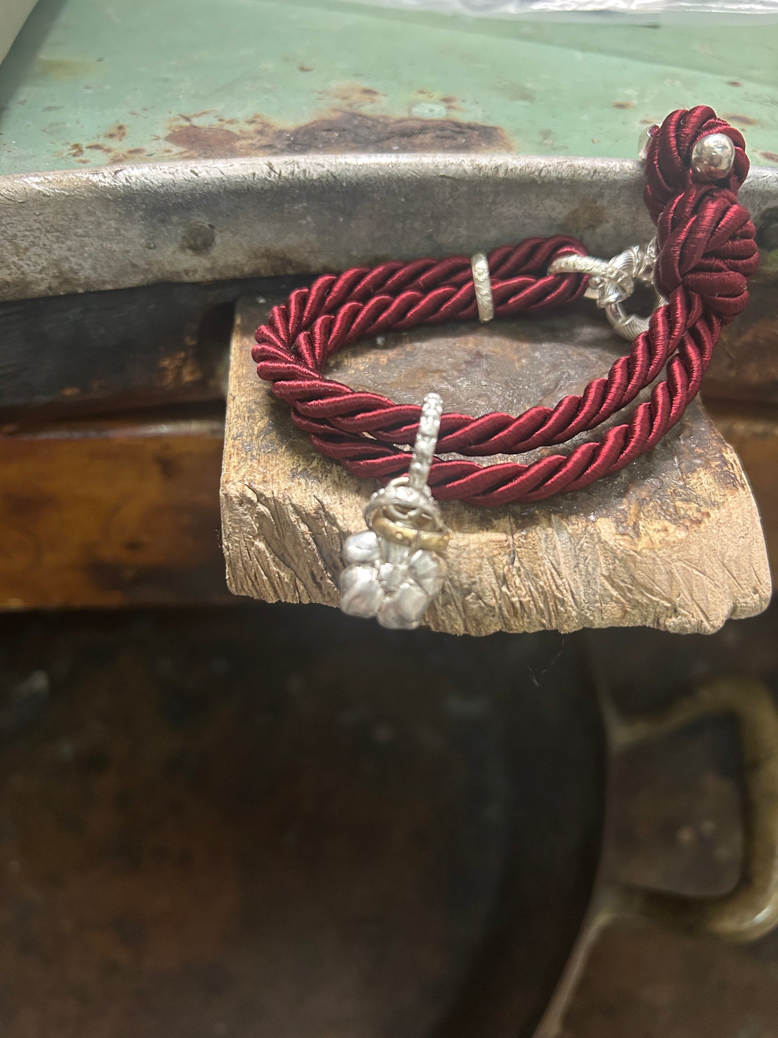 materiale: argento 925 e seta, bracciale realizzato artigianalmente