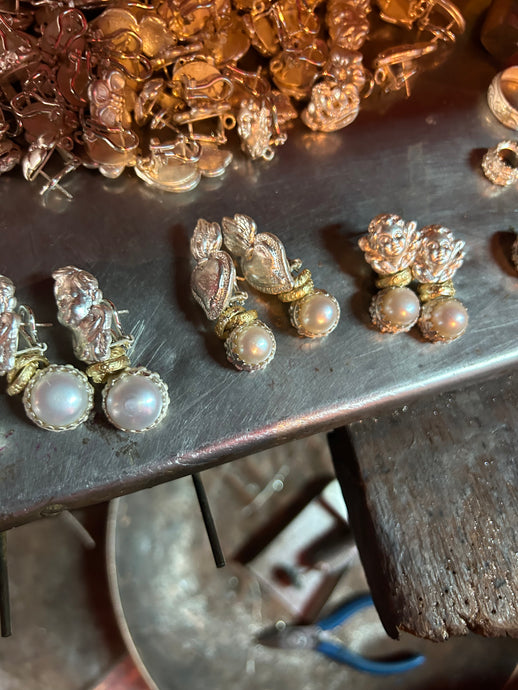 gli orecchini Lottie sono nati come la versione ridotta dei nostri classici soggetti come l’angelo, la corona, il fiore e La Rosa.